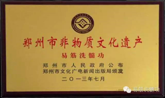 在国家弘扬民族传统文化的大力推崇下,经郑州市人民政府、郑州市文化广电出版局共同将“易筋洗髓功”列为郑州市非物质文化遗产。